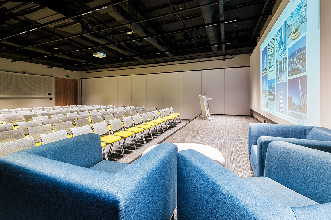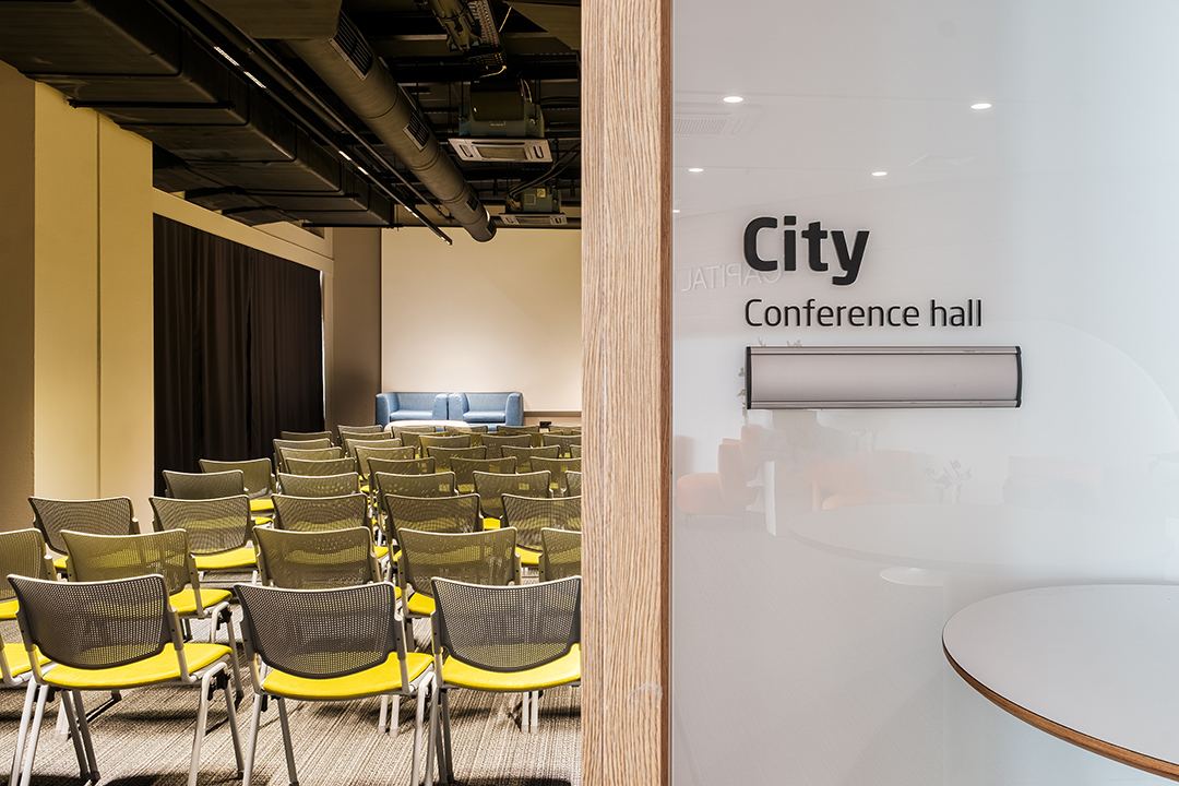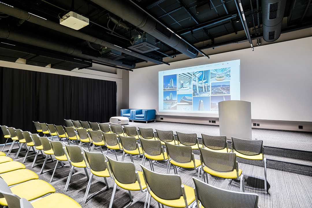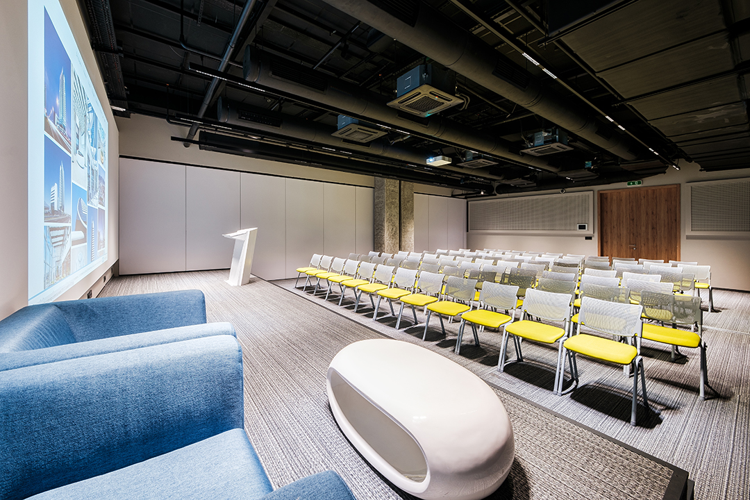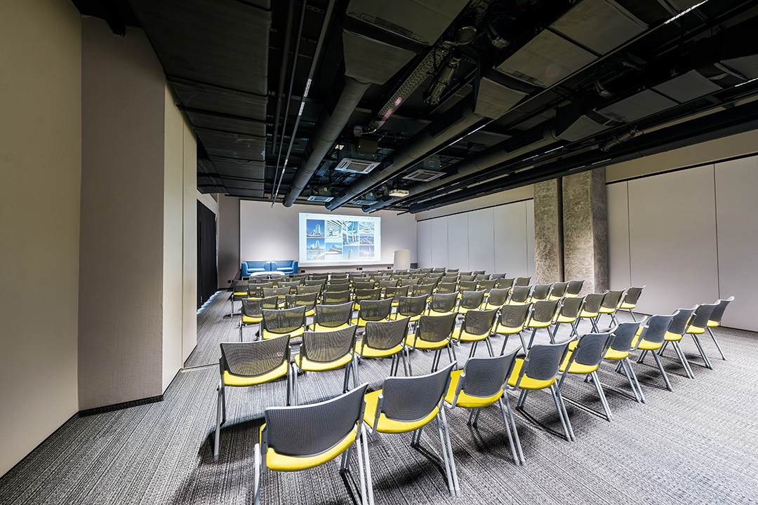 Лоби-Рецепция – пространство за регистрация и лаунж-зона 100 м. с гардероб, отделна зала 40 м. за кафе-пауза или коктейл, три зали за конференции, срещи, презентации, събития.