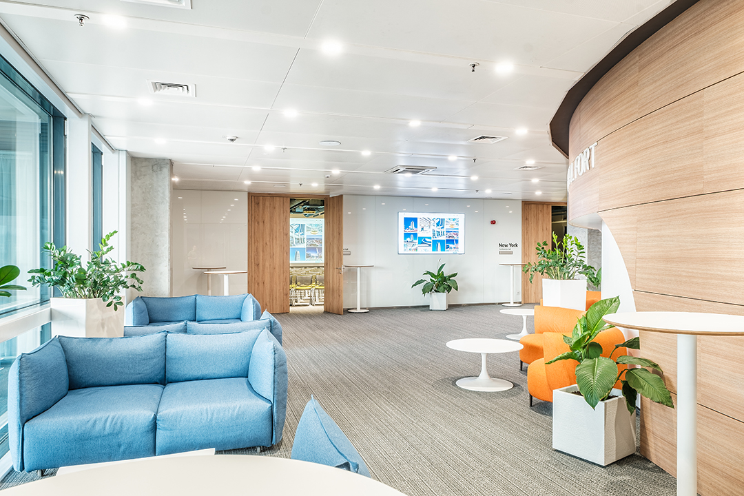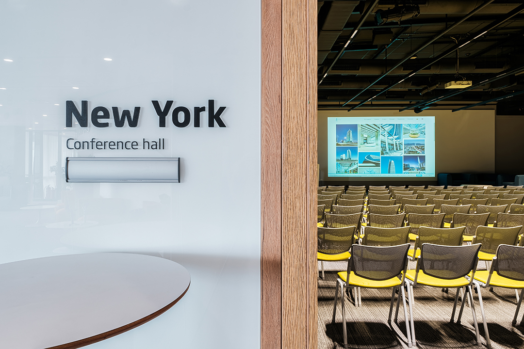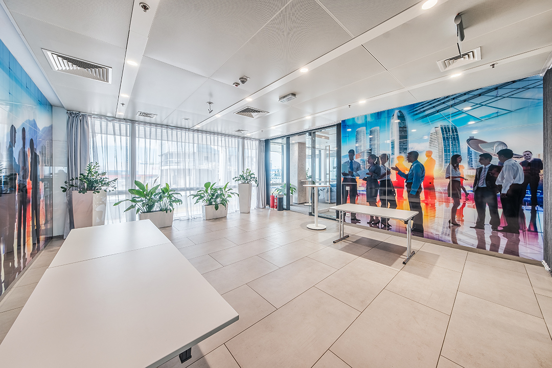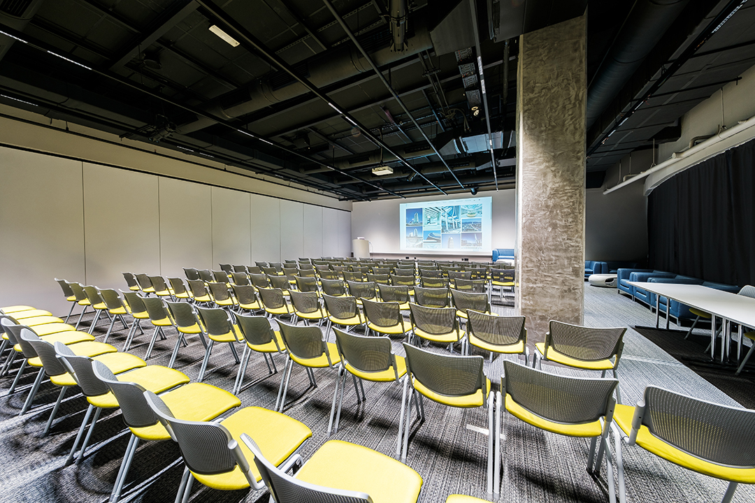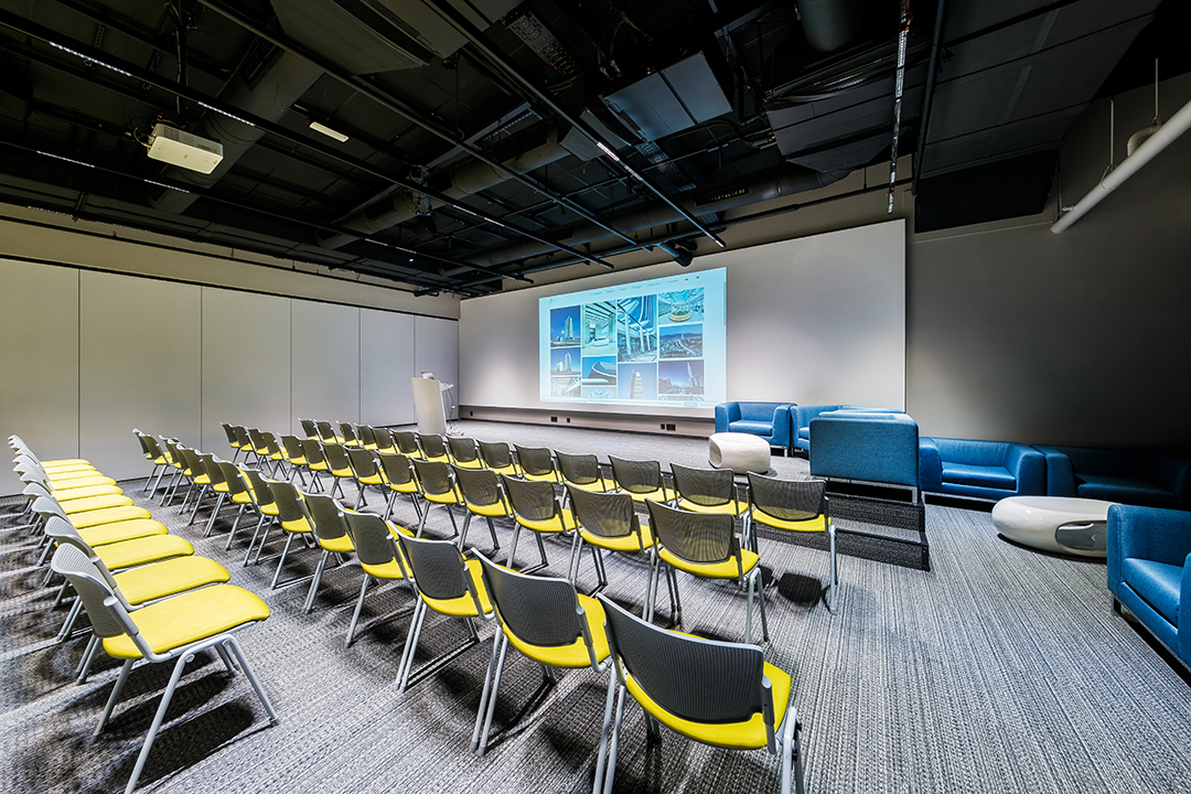 Лоби-Рецепция – пространство за регистрация и лаунж-зона 100 м. с гардероб, отделна зала 40 м. за кафе-пауза или коктейл, три зали за конференции, срещи, презентации, събития.